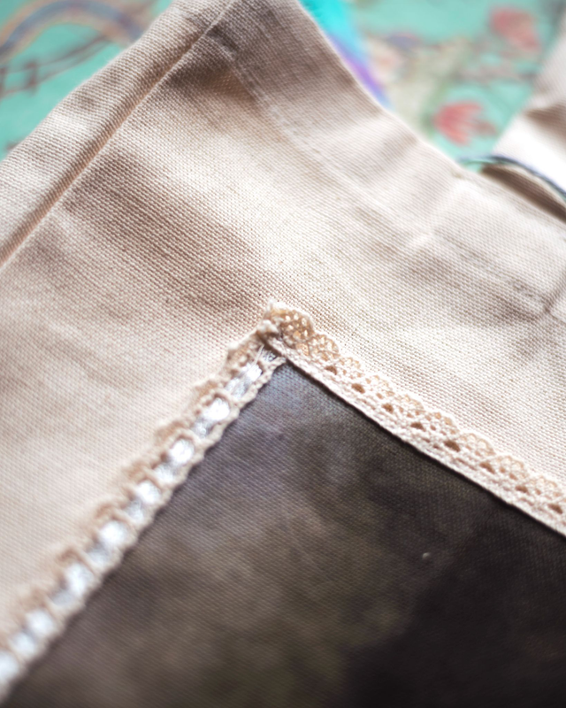 L'étiquette pailletée interne et les dentelles sont rajoutées et cousues par mes soins. Dans une démarche d'écoresponsabilité il s'agit de chutes de dentelle récupérées : chaque modèle est donc UNIQUE et comporte des dentelles différentes !