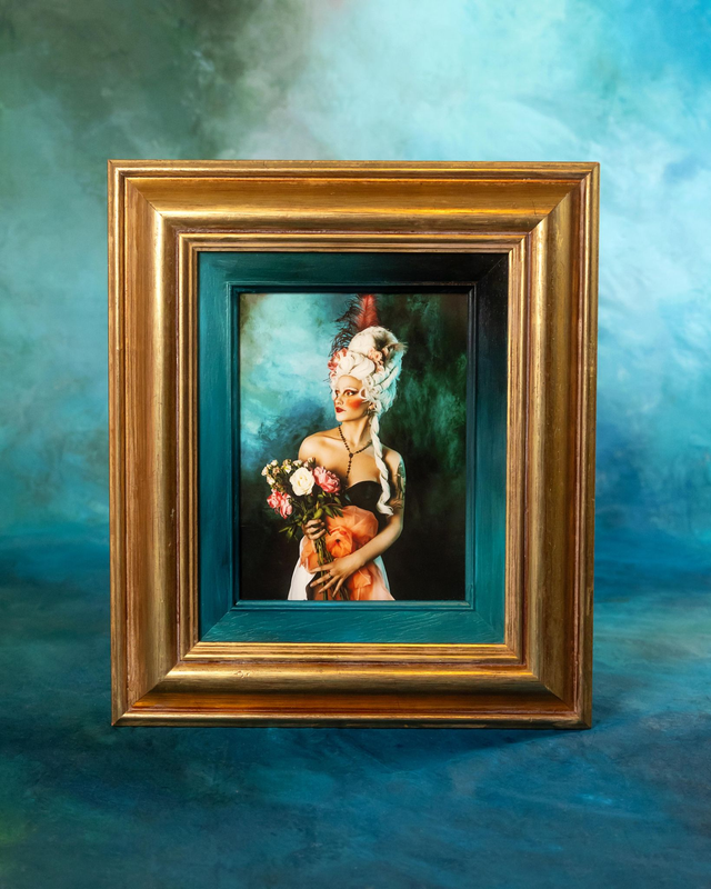 Tirage jet d'encre pigmentaire sur papier fine art, encadré dans un cadre chiné et restauré par mes soins.