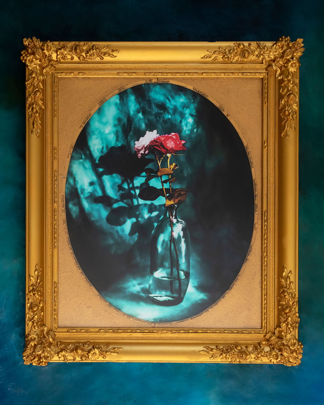 Tirage jet d'encre pigmentaire sur papier fine art, encadré dans un cadre chiné et restauré par mes soins.