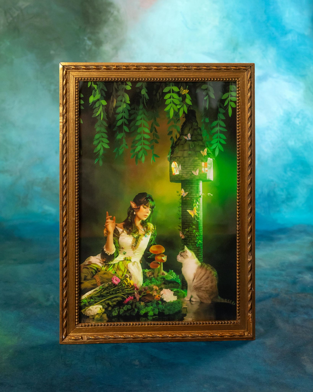 Tirage jet d'encre pigmentaire sur papier fine art, encadré dans un cadre chiné et restauré par mes soins.