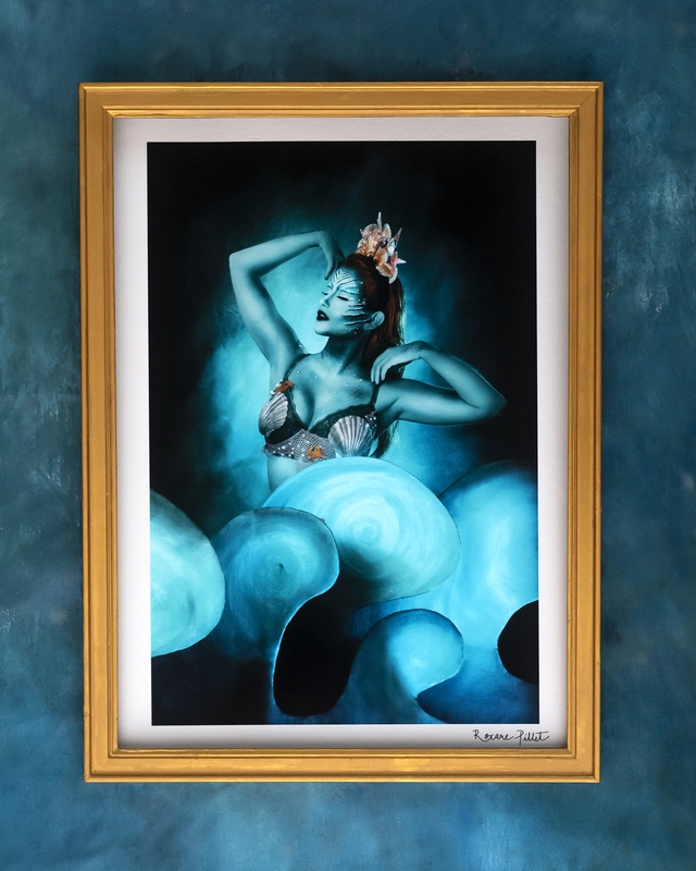 Tirage jet d'encre pigmentaire sur papier fine art, encadré dans un cadre chiné et restauré par mes soins.