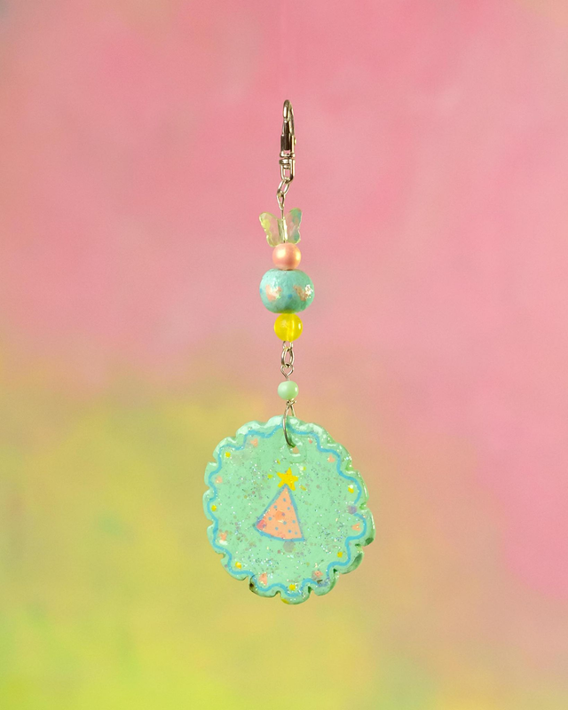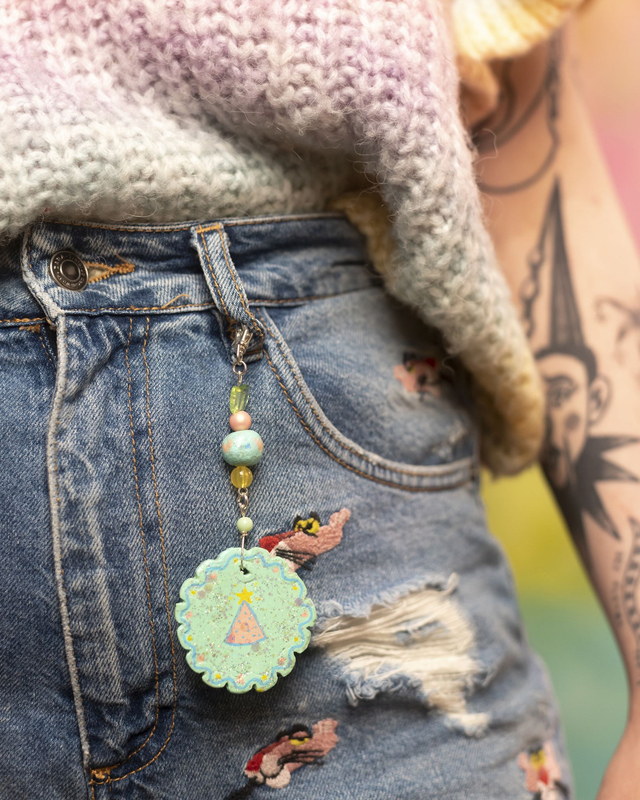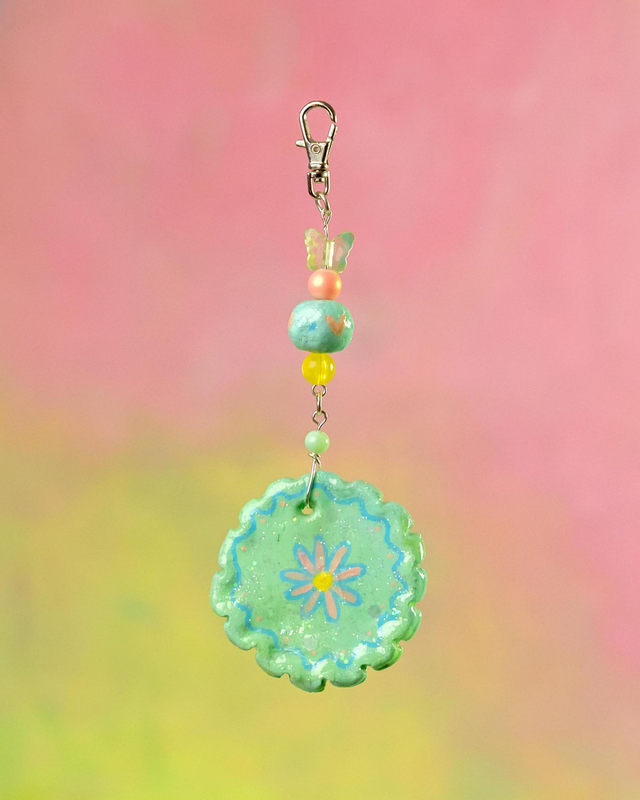 Porte clés avec pendentif et une perle en argile autodurcissante peints à la main.