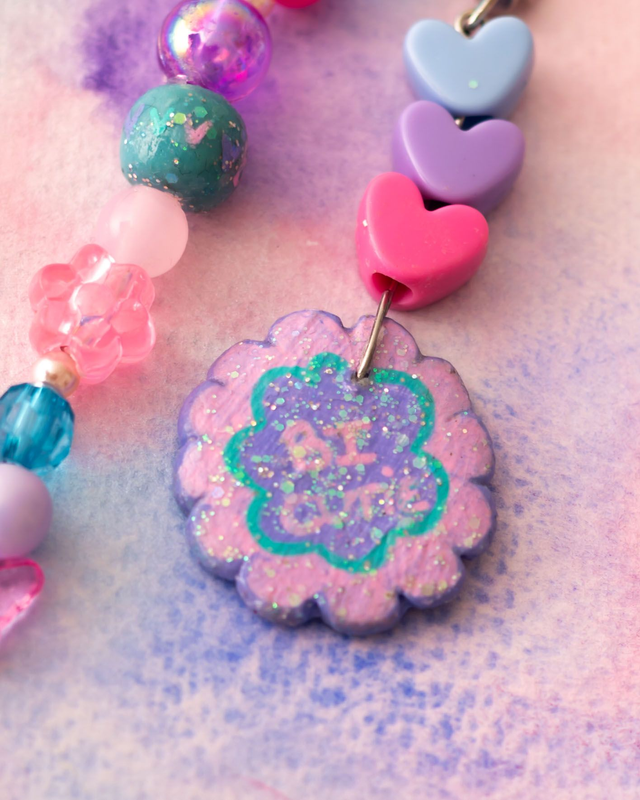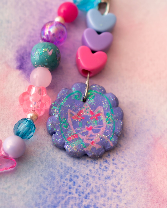 Porte clés avec pendentif et une perle en argile autodurcissante peints à la main.